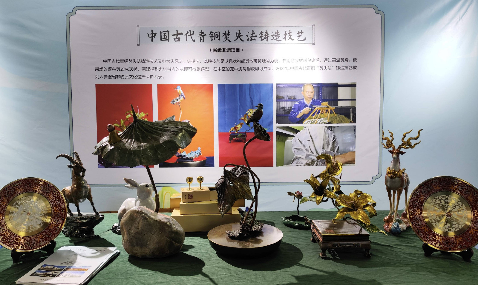 11月22日,以“皖風(fēng)徽韻·共享瑰寶”為主題的安徽省非物質(zhì)文化遺產(chǎn)傳統(tǒng)技藝大展在蚌埠市舉行。我公司的省級非遺項目——中國古代青銅焚失法鑄造技藝亮相大展?;顒蝇F(xiàn)場,銅陵文化館館長、銅陵市非物質(zhì)文化遺產(chǎn)保護(hù)中心主任陳建平向安徽省非遺保護(hù)中心主任宋磊、安徽省文化和旅游廳非遺處一級調(diào)研員彭正闊一行和現(xiàn)場觀眾詳細(xì)介紹了焚失法非遺技藝以及系列作品。焚失法鑄造技藝穿越千年,以其獨特的工藝和別具一格的藝術(shù)風(fēng)格完成了由實用技藝到藝術(shù)創(chuàng)作的轉(zhuǎn)型,展示了非遺傳承人的智慧,贏得了大家的一致好評。安徽老字號“銅官府”作為非遺傳承的重要力量,將繼續(xù)堅持守正創(chuàng)新,為傳承發(fā)展非遺技藝和弘揚傳統(tǒng)文化續(xù)寫新篇章。